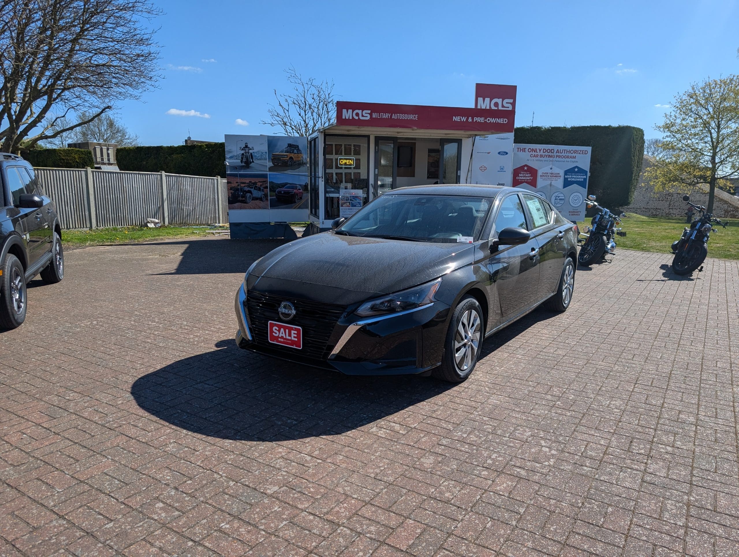 Yes. MAS handles full UK road compliance including headlight conversion, MOT, and road tax. Your Nissan Altima US spec arrives ready to drive on British roads. Stateside delivery and delivery to almost any other military base worldwide are also available.