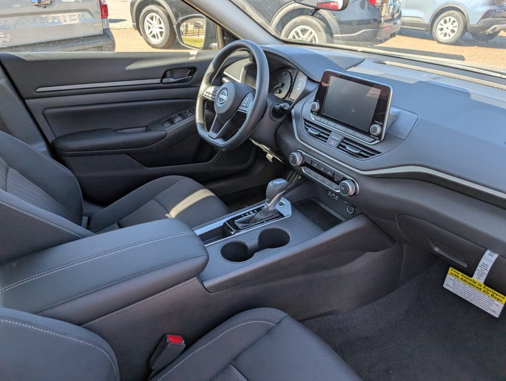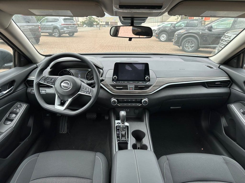 The S is the Altima’s entry point — and it comes well-equipped from the start. Standard features include an 8-inch touchscreen with Apple CarPlay and Android Auto, LED headlights, and remote engine start. On top of that, Nissan Safety Shield 360 comes standard — covering automatic emergency braking, blind spot warning, lane departure warning, and rear automatic braking. Inside, the interior features cloth seating, a clean dashboard layout, and 16-inch wheels.
