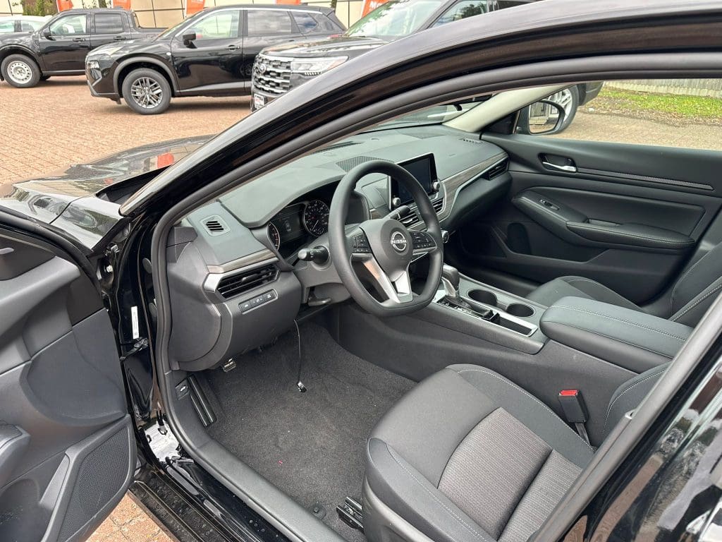 The Altima comes in four trims — S, SV, SR, and SL. Every trim runs the same 2.5-litre direct-injection four-cylinder engine. It produces 188 horsepower and 180 lb-ft of torque, paired with Nissan’s Xtronic CVT. Front-wheel drive comes standard. However, intelligent all-wheel drive is available on the SV, SR, and SL. When you order a Nissan Altima US spec in the UK for military through MAS, every trim is available.