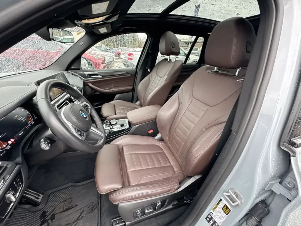 This pre-owned BMW X3 makes a commanding first impression. The Brooklyn Grey Metallic paintwork is a sophisticated, modern shade that catches the light beautifully, complemented by BMW’s signature M Performance styling throughout. The blacked-out kidney grille, aggressive front bumper design, and distinctive LED headlights with the iconic BMW light signature give this X3 an unmistakable presence on the road.