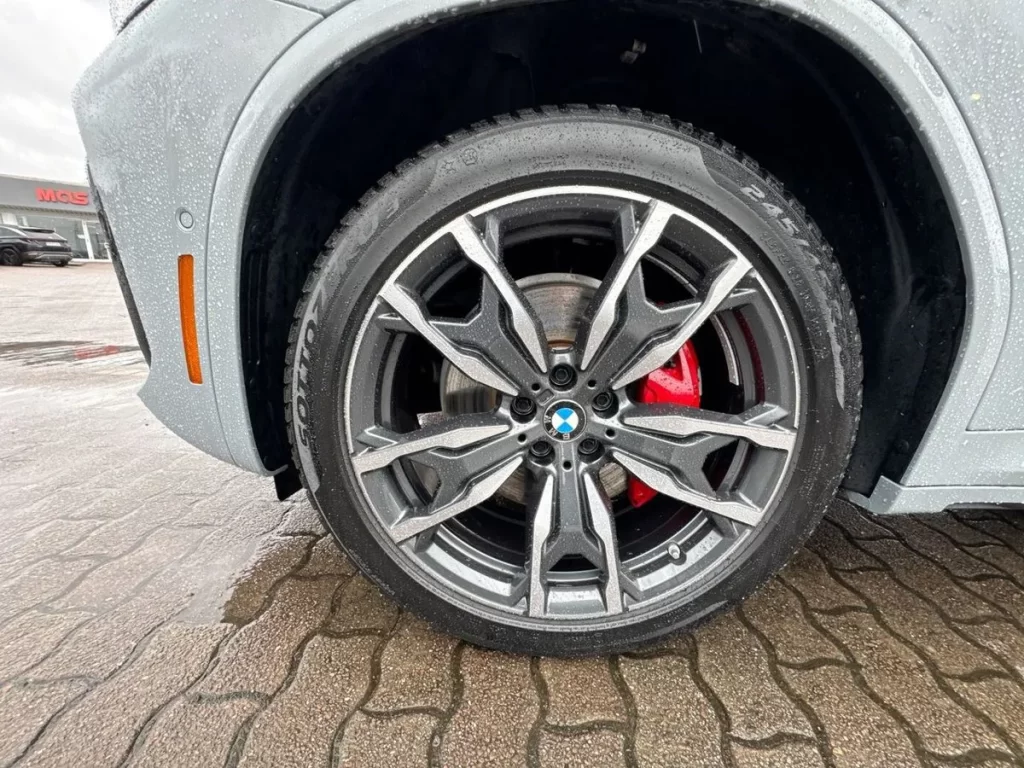 The M40i trim adds genuine performance credentials to the exterior package. Gloss-black Shadowline trim, a subtle rear spoiler, and quad exhaust tips leave no doubt about what lies beneath the bonnet. The 21-inch M alloy wheels in a dark bi-colour finish look exceptional, and behind them you’ll spot the M Sport brakes with striking red calipers — a detail that reinforces the performance pedigree of this SUV.